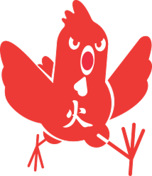 디자인입니다. 날개를 벌리고 돌격하는 닭 캐릭터는 고객의 니즈를