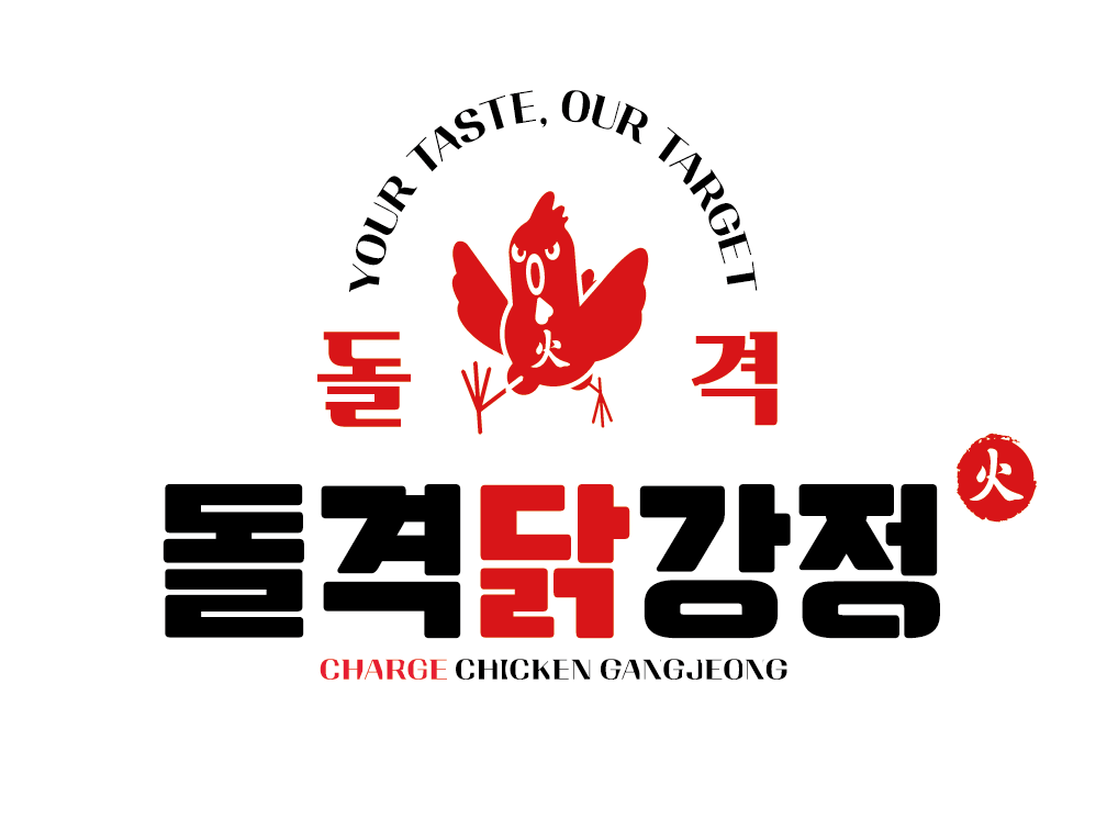 돌격닭강정은 '돌격한다'는 브랜드 콘셉트를 시각화한 강렬하고 유쾌한 디자인입니다.